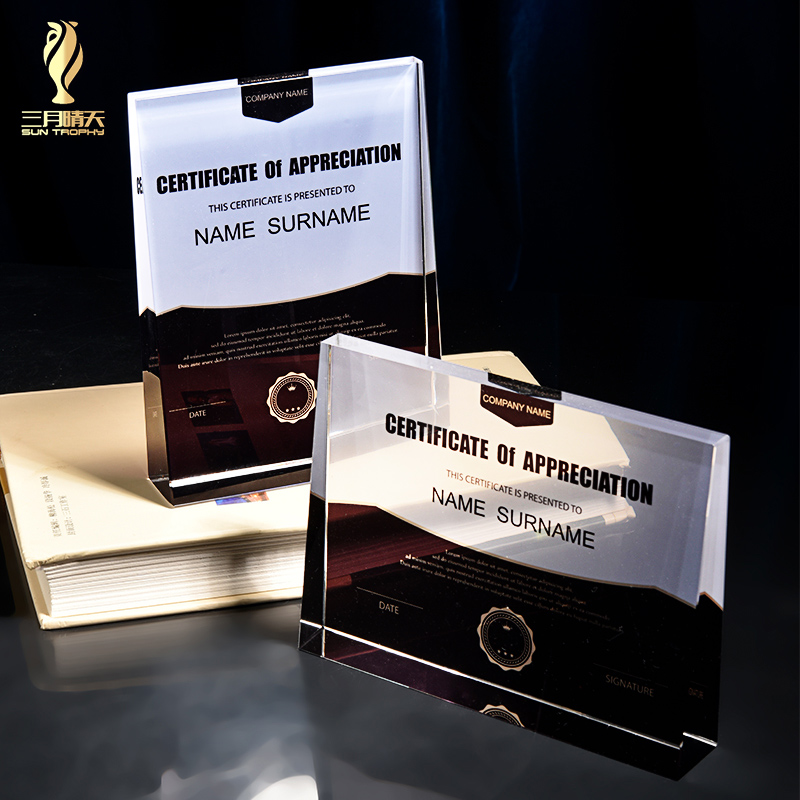 Crystal medal authorization card customized franchise certificate engagement letter Making free engraving activities competition award trophy