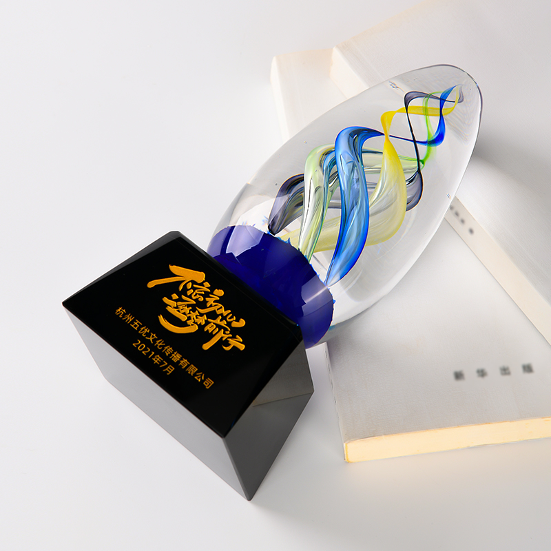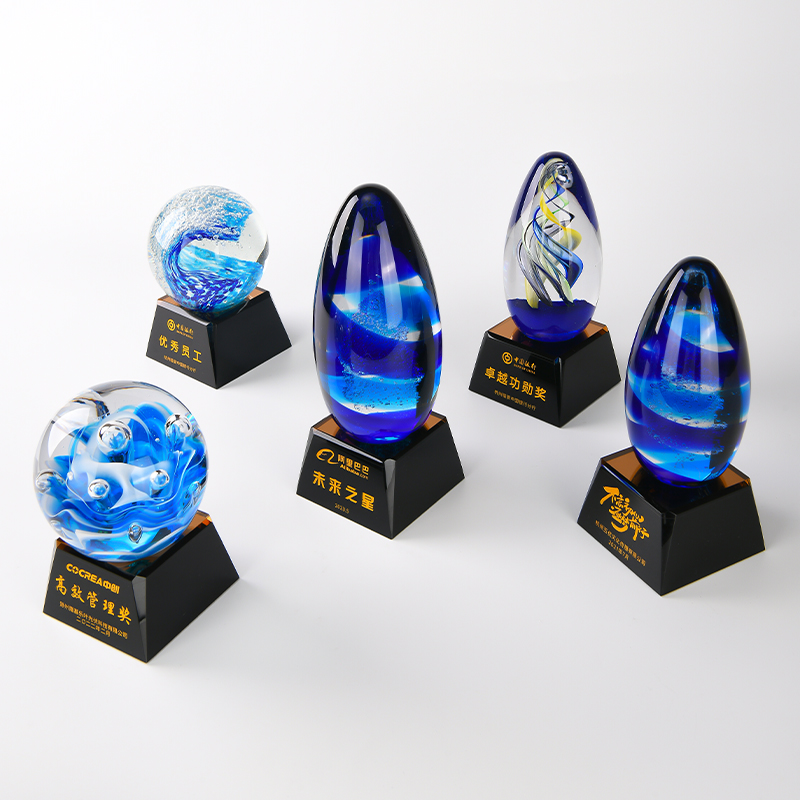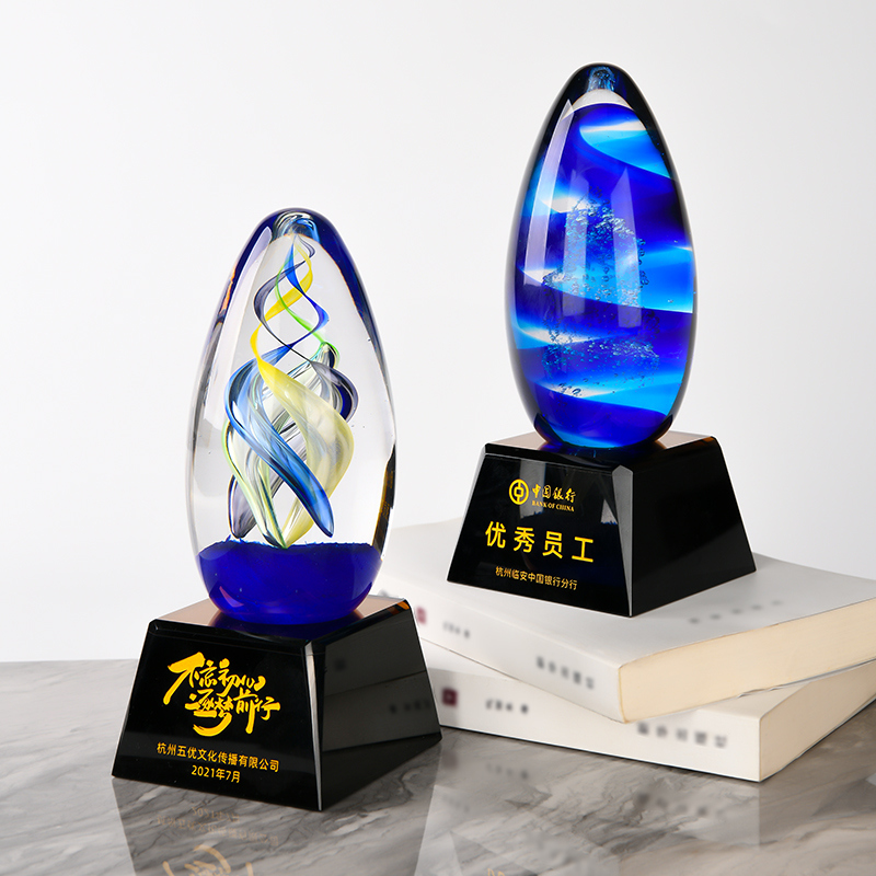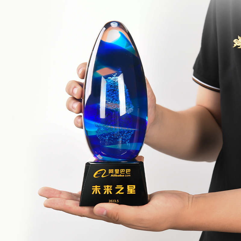 Glass trophy customization enterprise outstanding staff award partners souvenir gift Blue crystal trophy engraved