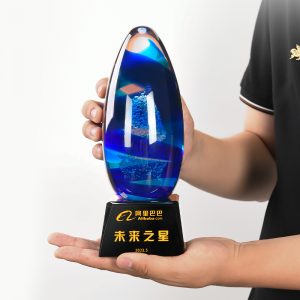Looking to honor exceptional staff members or partners who have contributed to your enterprise’s success? Our glass trophy customization service offers exquisite blue crystal trophies that can be personalized with your company’s logo and a heartfelt message. Show appreciation and motivate your team with these stunning souvenirs, crafted to commemorate remarkable achievements.