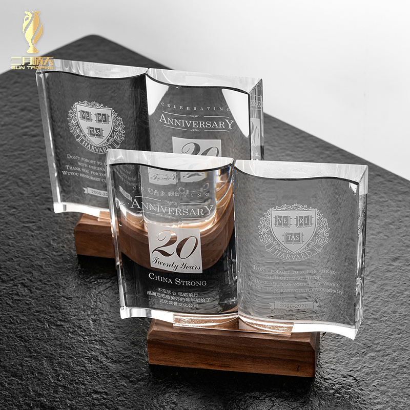 Customize your high-grade crystal trophy and solid wood medals for personalized retirement awards and commemorative achievements.