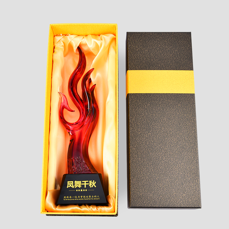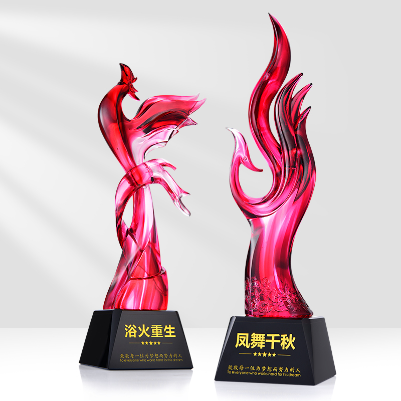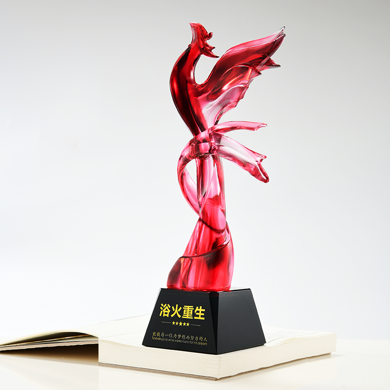 Reborn glass trophy custom opening gift Red Phoenix souvenir custom high-grade crystal trophy