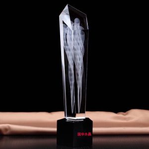 Glass trophy customization enterprise outstanding staff award partners souvenir gift Blue crystal trophy engraved